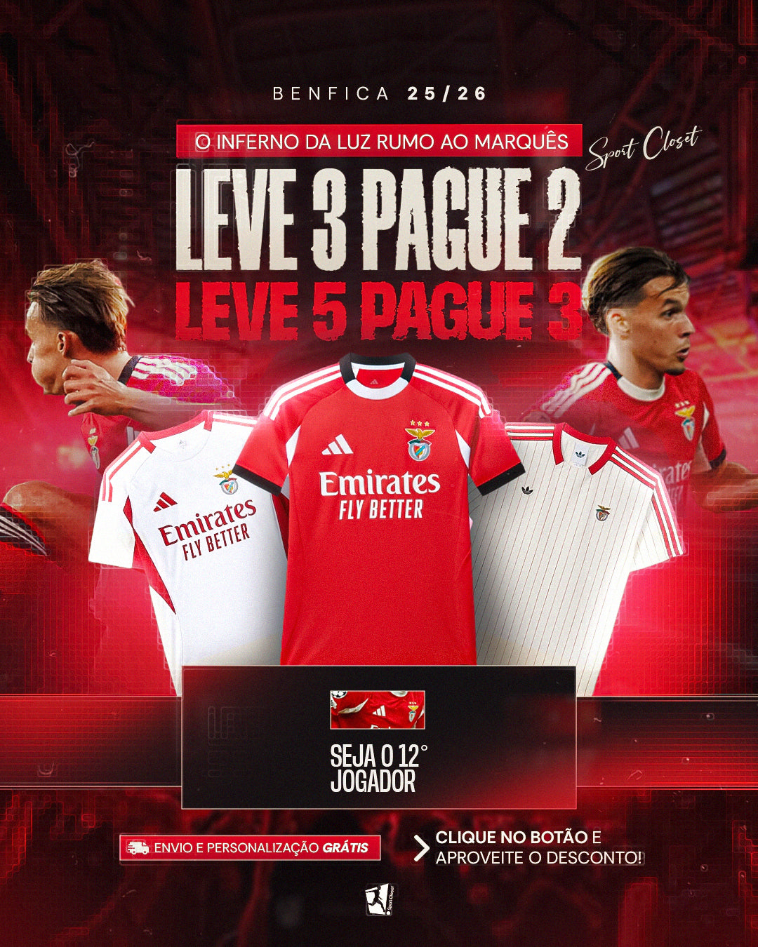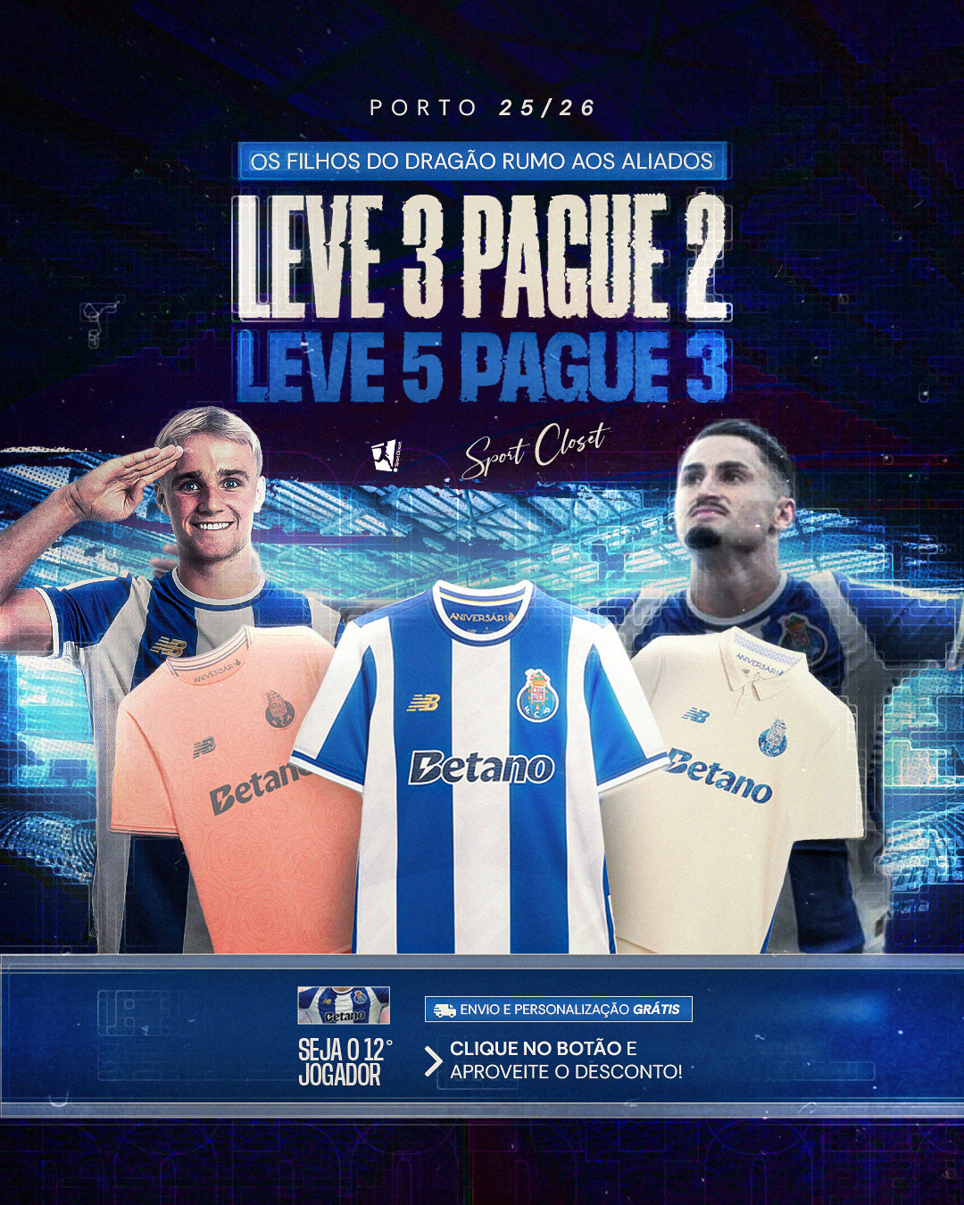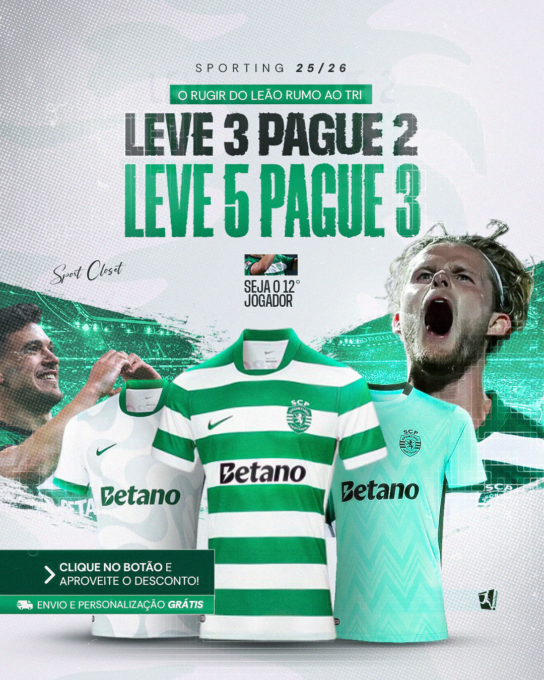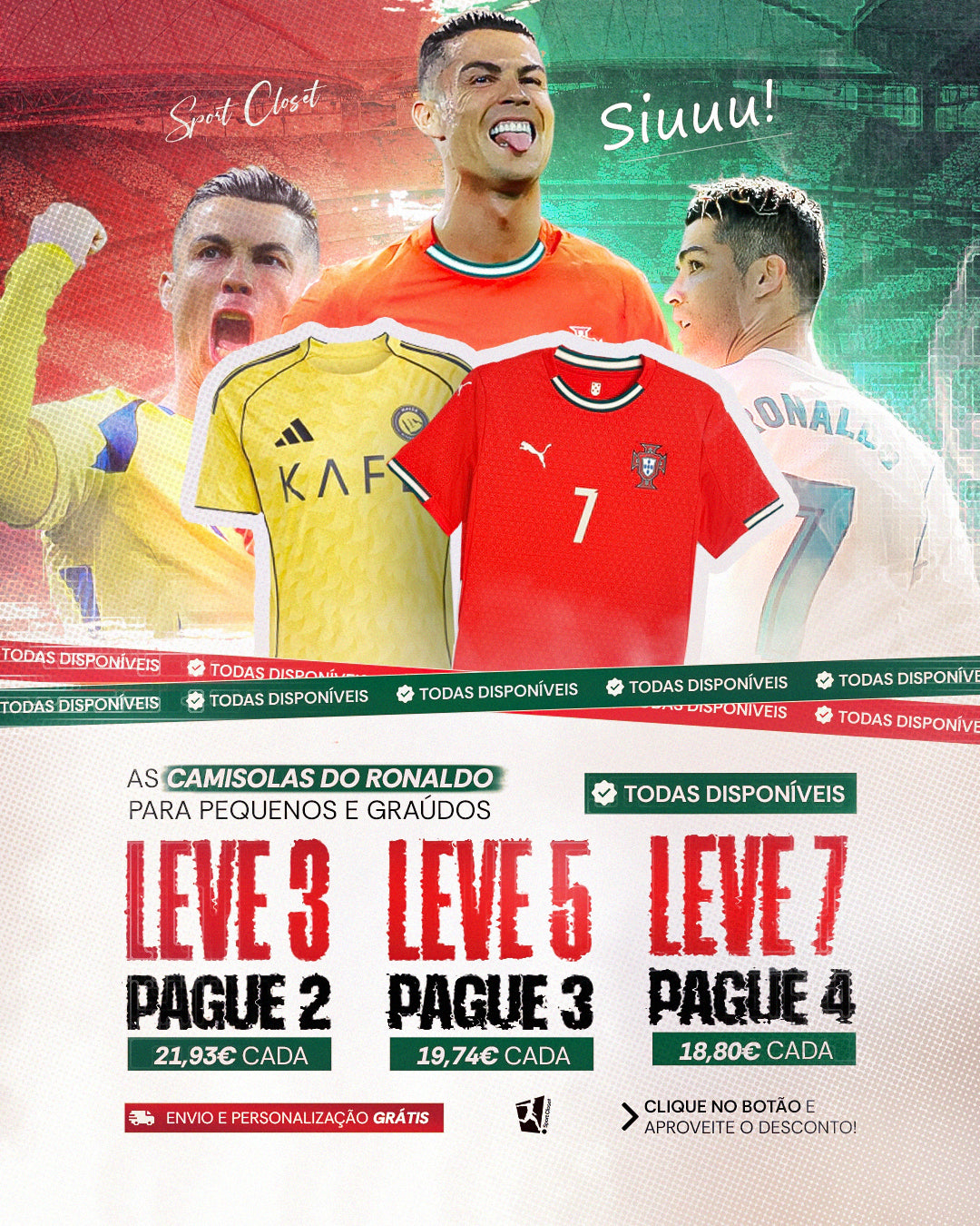 Com esta promoção, ao adicionar 3 camisolas ao seu carrinho, apenas pagará o valor de 2 delas. O desconto é aplicado automaticamente no checkout, não sendo necessário nenhum código adicional.