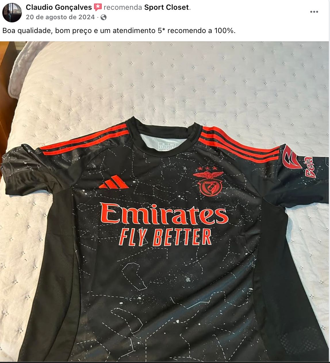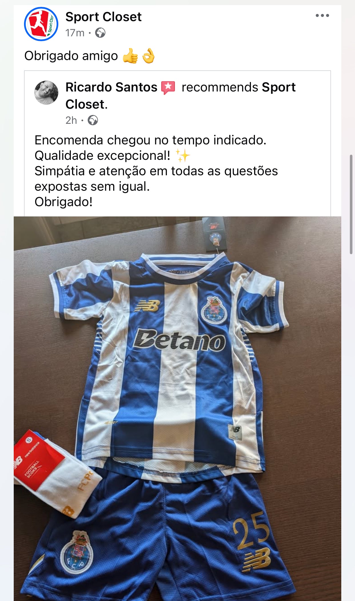 Adorei a minha camisola! Chegou rápido e a qualidade é excelente. Recomendo a Sport Closet a todos os fãs de futebol.