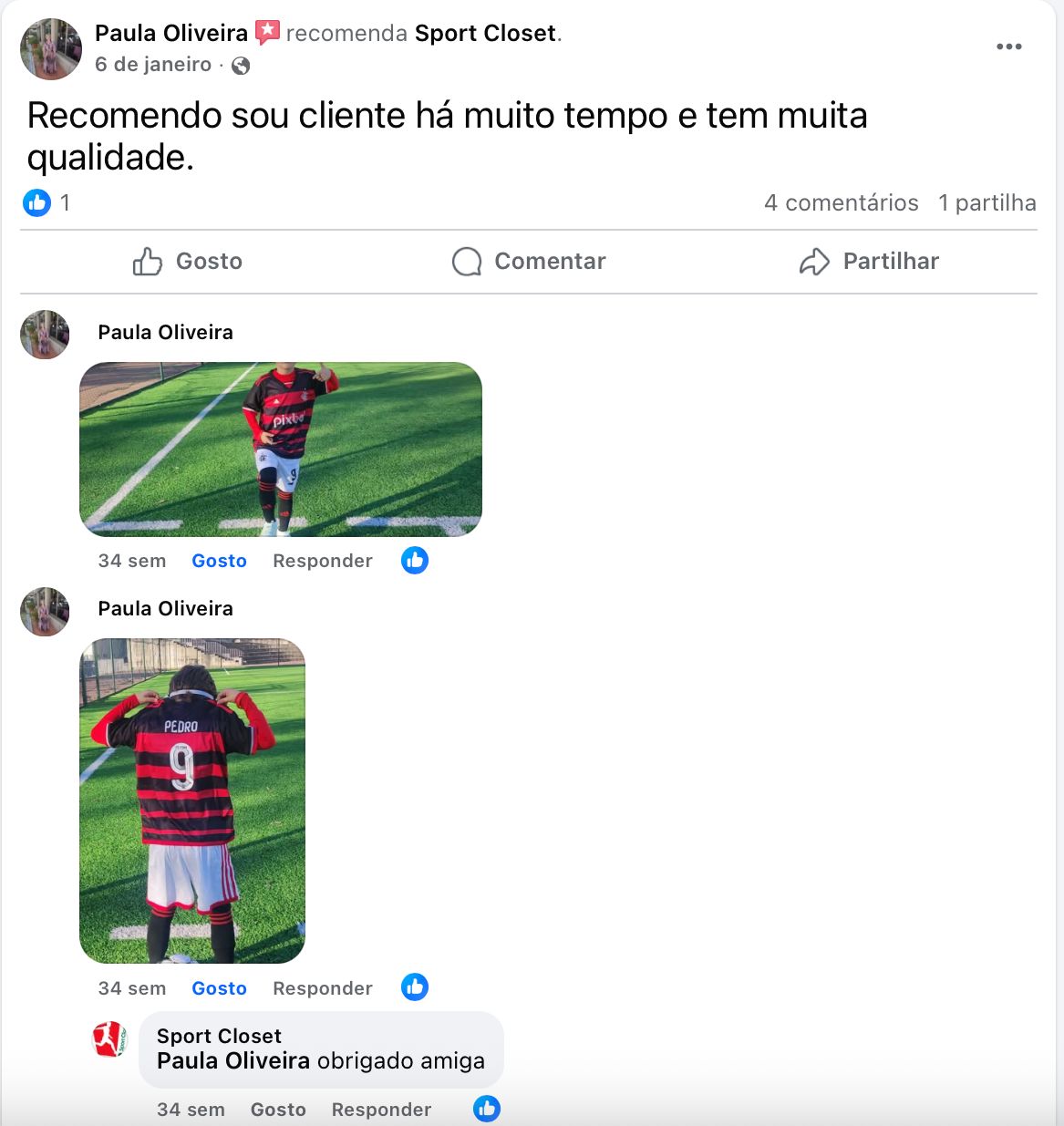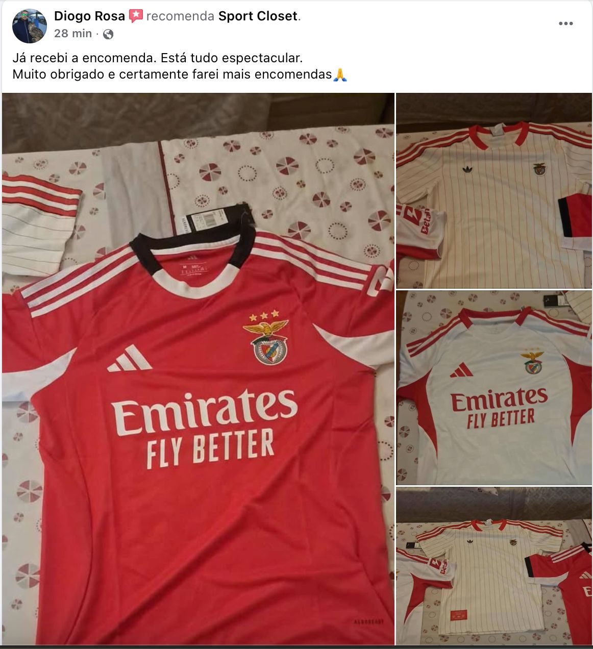 Comprei a camisola do meu clube favorito e fiquei impressionada com o cuidado na embalagem e na entrega. 5 estrelas para a Sport Closet